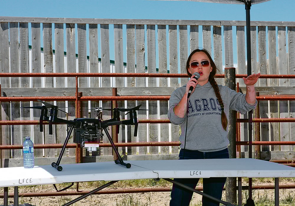 A blustery day grounded Alex Waldner’s planned demonstration flight — an occupational hazard for Saskatchewan drone pilots, she said — but the University of Saskatchewan master’s student waxed enthusiastic about the value of an eye in the sky for research and producers.