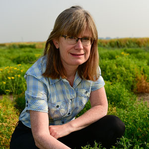 Rosalind Bueckert is a Professor of Crop Physiology in the Department of Plant Sciences in the College of Agriculture and Bioresources at the University of Saskatchewan. Her research program is focused on understanding the relationship between field crop growth and yield response to environmental factors such as heat stress and drought stress. The emphasis is on short season field crop cultivars in a combination of dryland and irrigated prairie conditions and controlled stress conditions. Additionally, she is exploring biological nitrogen fixation and the potential to increase nitrogen productivity in legume crops to decrease fertilizer use in typical dryland prairie conditions and controlled stress conditions. Dr. Bueckert has authored 55 peer-reviewed publications and an invited textbook chapter on the domestication of agricultural crops for the Encyclopedia of Pest Management.
